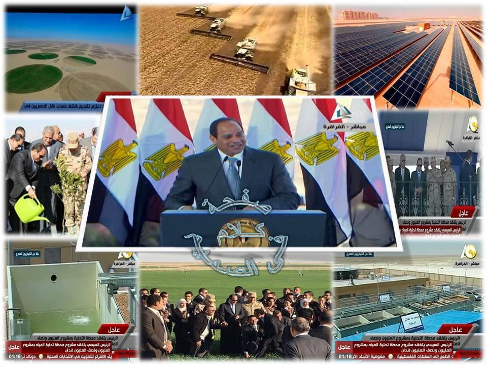 الحقائق على الأرض هى اللى بتتحدث .. واللى مش عايز يشوف عمره ما هــ يشوف … لكن النهاردة إحنا شوفنا … شوفنا القمح فى الفرافرة، وإمبارح الرخام والتعدين فى جبل الجلالة ، .. وقبله شبكة الطرق والكبارى والأنفاق ..وقبلهم كلهم قناة السويس .. ولسة اللى جاى أحسن بإذن الله …