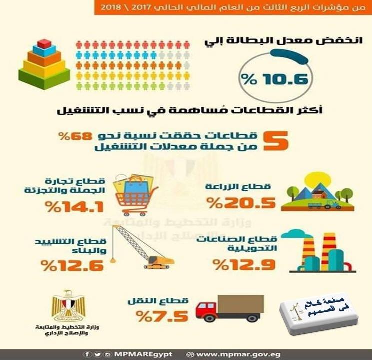 الإنفوجراف ده .. ومن خلال جزئية واحدة فقط وهى جزئية إنخفاض معدلات البطالة ، بيوضح الطفرة اللى حصلت فى بعض القطاعات من مكونات الإقتصاد المصرى ، واللى موجودة فى أى إقتصاد فى العالم مش فى مصر بس ..