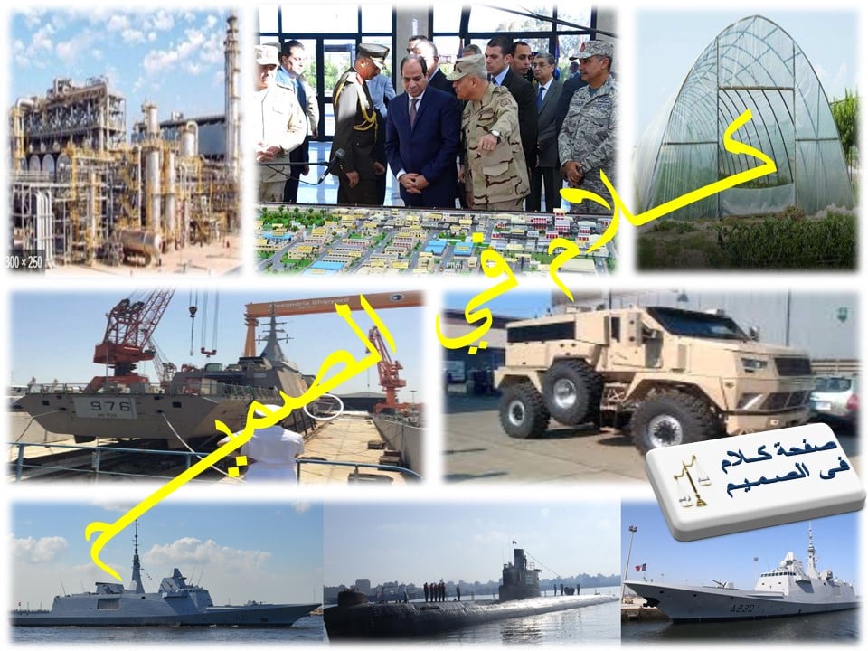 و ده أيضا ، بخلاف تطوير منظومات التسليح في كل أفرع القوات المسلحة إما بشراء أحدث منظومات التسليح أو بتطوير المصانع الحربية و توطين تكنولوجيا التسليح الثقيل في مصر بمعدلات تنفيذ غير مسبوقة.