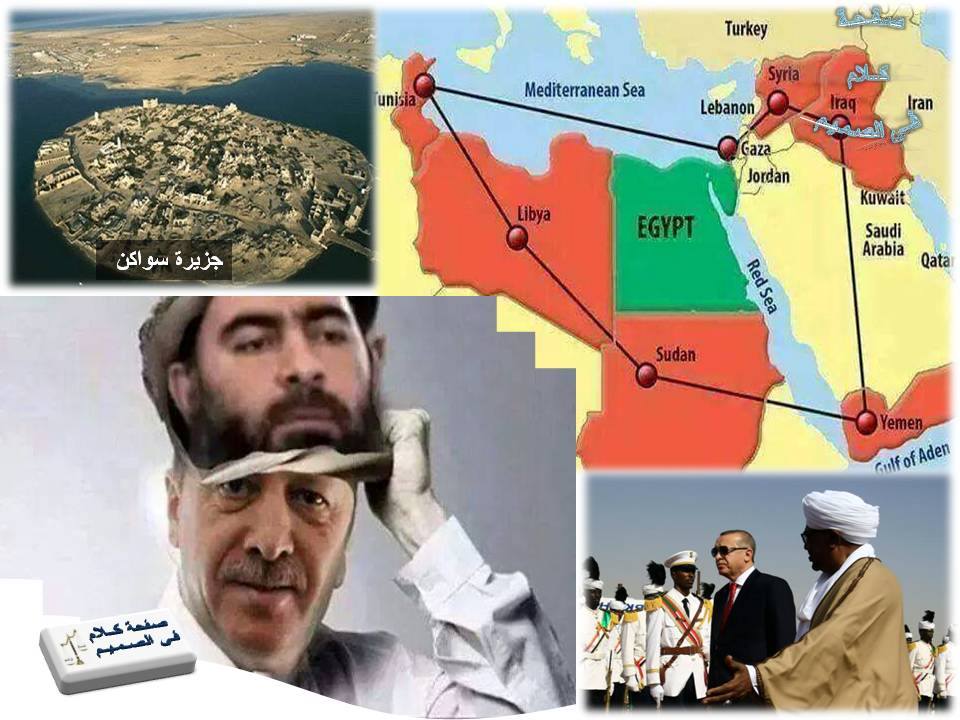 نرجع تانى لموضوعنا .. وعلشان ندخل بشكل مباشر فى الموضوع بدون تطويل ممل أو إختصار مُخلّ .. إحنا بس عايزين نلفت نظر اصدقائنا لبعض المشاهد اللى حصلت فى خلال الكام شهر اللى فاتوا .. أولها رفع العقوبات الأميريكية عن السودان .. مروراً بزيارة الشيخة موزة للسودان .. والكلام عن الأهرامات اللى اقدم من اهرامات الجيزة 🙂 .. واسلوب النظام السودانى القذر مابين الشد والجذب والتلاعب بالتصريحات تجاه مصر ، والضغط إيجابا وسلبا فى موضوع ملف نهر النيل … وبعدين إندحار داعش المفاجئ فى العراق وسوريا بعد ما عملوا اللى عليهم من تخريب وتدمير .. والحديث عن إجلاء متطرفي داعش من شمال سوريا الي جهات غير معلومة .. ويطلع اردوغان يعلن إن داعش تم ترحيلهم الي سيناء من غير مايقول مين وإزاى 😉🙂 .. و وصولا إلى إن أردوغان رئيس تركيا الإخوانى ، يزور البشير الاخواني ، وياخد تسهيلات بإدارة قاعدة عسكرية فى سواكن .. واللى كان قبلها وطد وجوده فى قاعدة عسكرية على الأراضى الصومالية ذات النظام الإخوانى .. وكل ده بالتزامن مع الجولة اللى بيقوم بيها تميم ننوس عين أمه للعديد من دول إفريقيا .. بعد أصداء تجمع الكوميسا اللى إنعقد بنجاح فى مصر فى أول شهر ديسمبر .. وكل ده فى الوقت اللى مصر فيه بتعبر بوابة الأمل فى مجال الإقتصاد والنمو .. وعلى اعتاب الإنتخابات الرئاسية القادمة !!! …